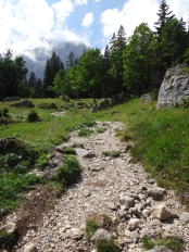 Karwendelgebirge: Aufstieg von der Engalm (1270m) bei sommerlicher Hitze und Sonnenschein |