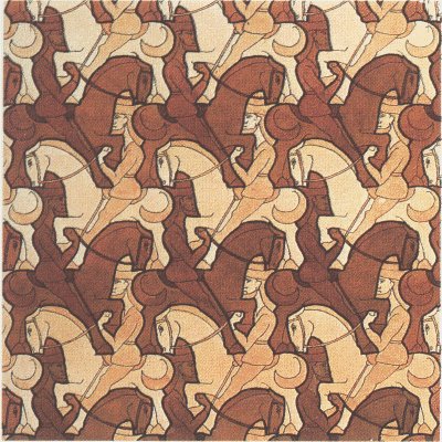 Escher hatte ein herausragendes Talent für die künstlerische Darstellung regelmäßiger Flächenfüllungen mit unregelmäßig begrenzten Figuren und zur Darstellung des Unendlichen.